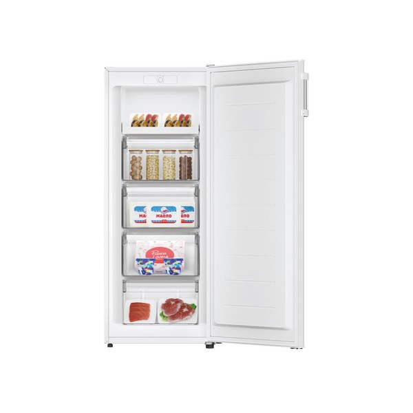 Candy CUQS 513EWH. Capacità netta congelatore: 163 L, Classe climatica: SN-ST, Capacità di congelamento: 7,5 kg/24h, Autonomia senza energia elettrica: 9 h, Emissione acustica: 38 dB, Punteggio: 4*. Cerniera porta: Destra. Classe efficienza energetica: E, Consumo energetico annuo: 189 kWh. Colore del prodotto: Bianco