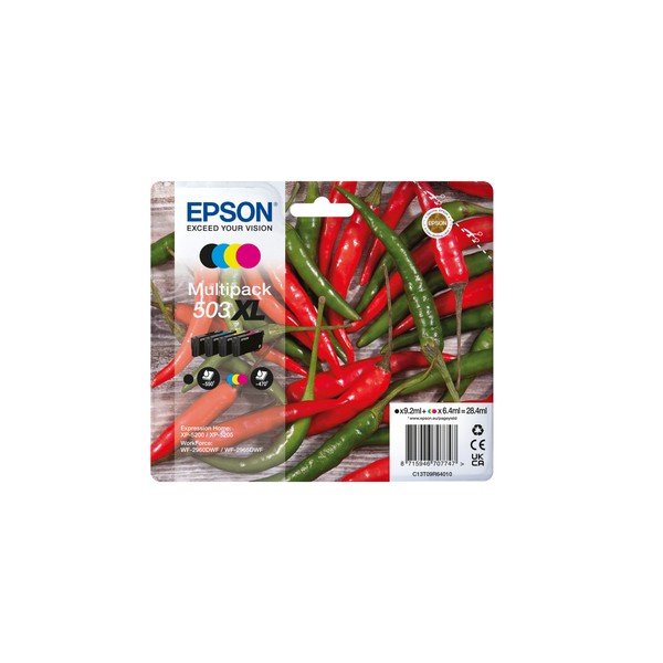 Epson C13T09R94010. Tipo di cartuccia: Resa elevata (XL), Volume dell'inchiostro nero: 9,2 ml, Tipo di fornitura: Confezione multipla, Resa in pagine dell'inchiostro a colori: 470 pagine, Volume dell'inchiostro a colori: 6,4 ml, Quantità per pacco: 4 pz, Resa in pagine dell'inchiostro a colori: 550 pagine
