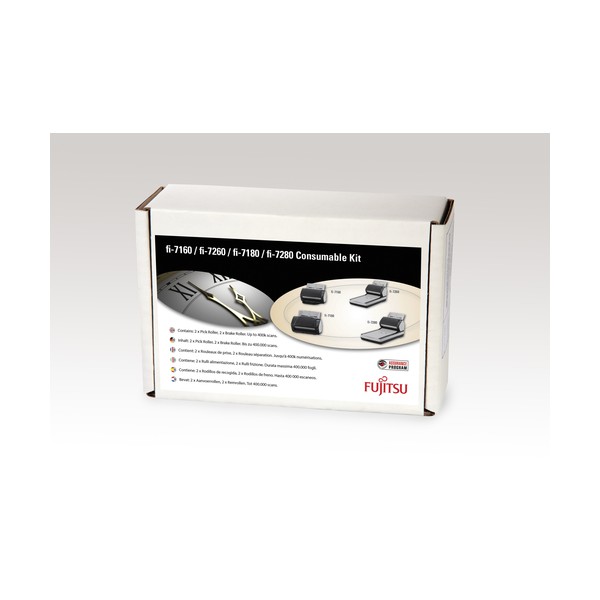 Questo kit di componenti di consumo approvato dal produttore è fornito di istruzioni e dei componenti di consumo indispensabili e può essere acquistato dal proprio rivenditore di fiducia. Il kit offre ricambi maneggevoli per i componenti di consumo che subiscono l'usura durante il normale utilizzo, ad esempio tappetini e rulli. Funge da indispensabile kit di manutenzione preventiva aiutando a migliorare le prestazioni, riducendo i costi di servizio e garantendo il funzionamento ottimale dello scanner.