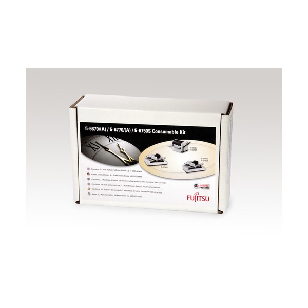 Questo kit di componenti di consumo approvato dal produttore è fornito di istruzioni e dei componenti di consumo indispensabili e può essere acquistato dal proprio rivenditore di fiducia. Il kit offre ricambi maneggevoli per i componenti di consumo che subiscono l'usura durante il normale utilizzo, ad esempio tappetini e rulli. Funge da indispensabile kit di manutenzione preventiva aiutando a migliorare le prestazioni, riducendo i costi di servizio e garantendo il funzionamento ottimale dello scanner.