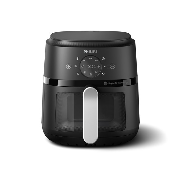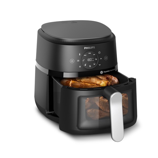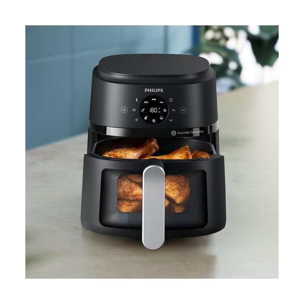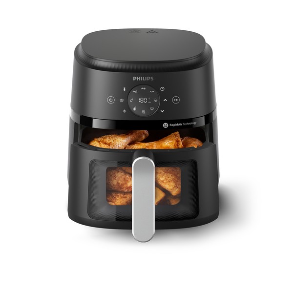 Scopri il piacere di cucinare piatti deliziosi con semplicità Croccante all'esterno, tenero all'interno. L'esclusiva tecnologia RapidAir consente di risparmiare tempo ed energia, senza compromettere il gusto. Dai un'occhiata attraverso la finestra di cottura e guarda i tuoi ingredienti preferiti trasformarsi in piatti deliziosi in meno di 15 minuti.