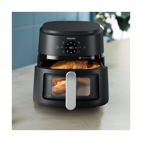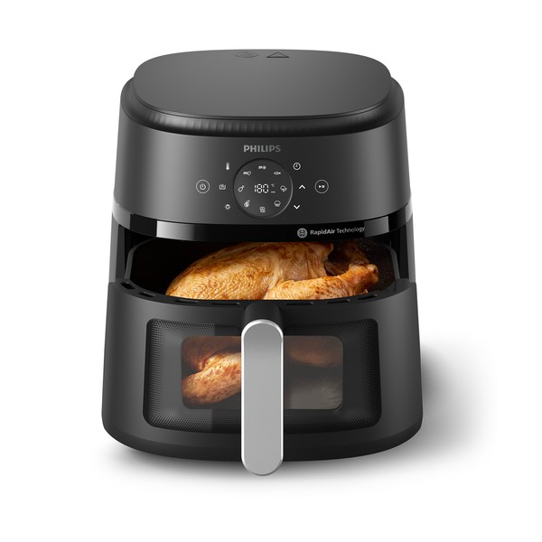 Scopri il piacere di cucinare piatti deliziosi con semplicità Croccante all'esterno, tenero all'interno. L'esclusiva tecnologia RapidAir consente di risparmiare tempo ed energia, senza compromettere il gusto. Dai un'occhiata attraverso la finestra di cottura e guarda i tuoi ingredienti preferiti trasformarsi in piatti deliziosi in meno di 15 minuti.