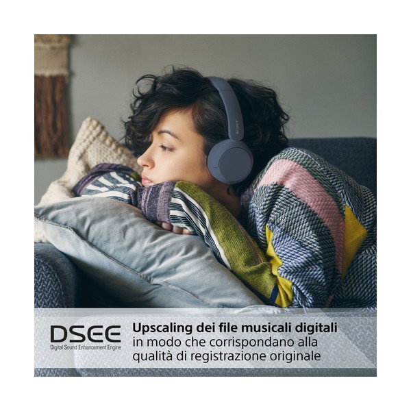 Cuffie wireless WH-CH520: per un'esperienza di ascolto di alta qualità. Ascolta la tua musica grazie al nostro Digital Sound Enhancement Engine (DSEE) e goditi fino a 50 ore di autonomia della batteria, un design super confortevole,chiamate cristalline e molto altro.