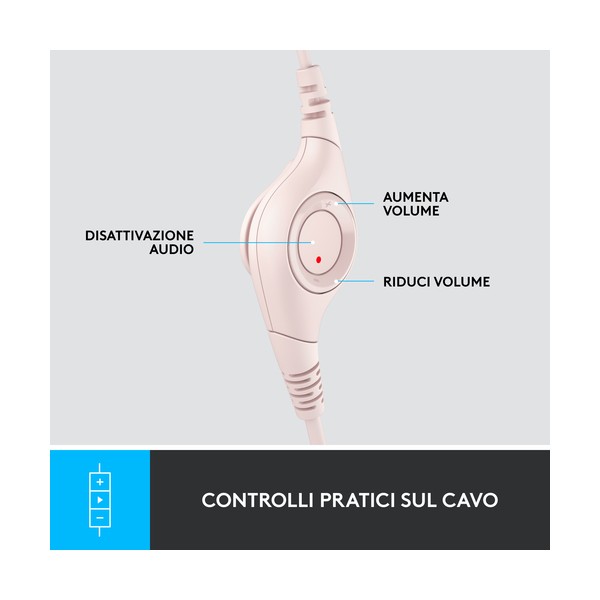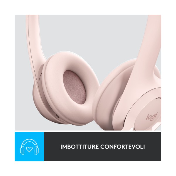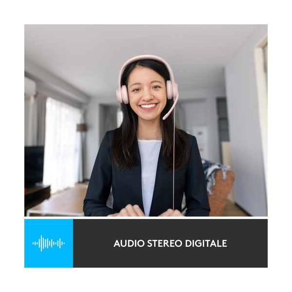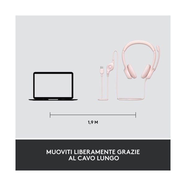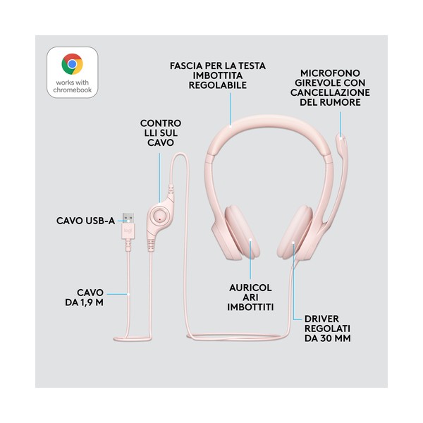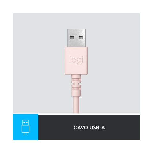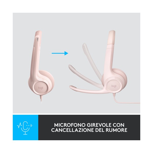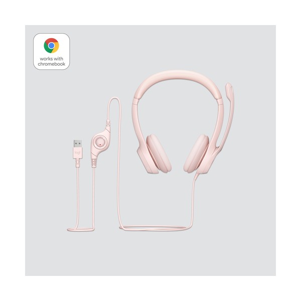 Logitech H390 Cuffia con Cavo per PC/Portatile, Auricolari Stereo con Microfono con Cancellazione del Rumore, USB-A, Comandi Integrati, Compatibile con i Chromebook, Rosa