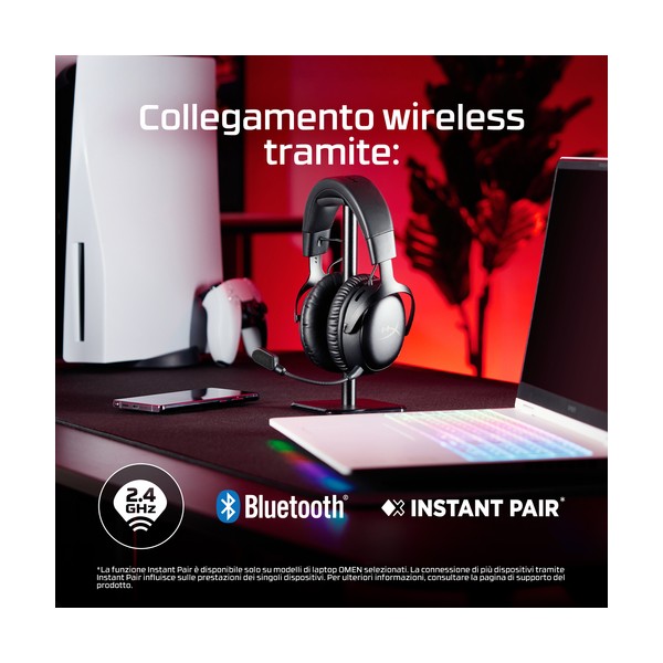 - Sfrutta la comodità e la versatilità del wireless con il collegamento in modalità 2,4 GHz o Bluetooth. Su laptop da gaming OMEN selezionati è disponibile la funzionalità Instant Pair[2] per il collegamento immediato senza dongle.