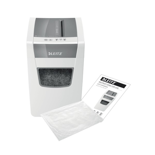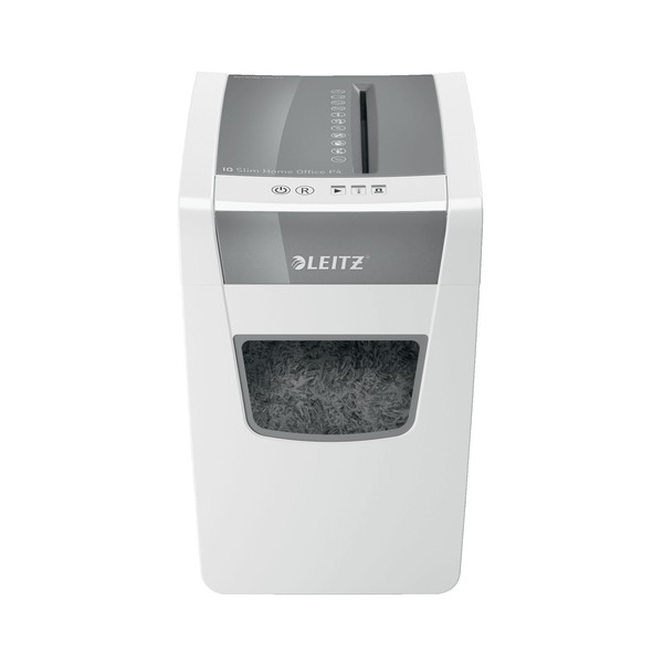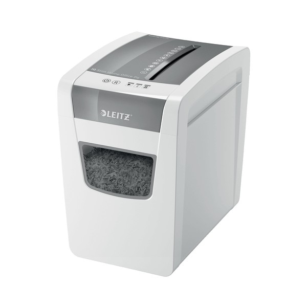 Leitz IQ Slim Office P-4. Tipo di sminuzzamento: Triturazione incrociata, Ampiezza di funzionamento: 22 cm, Dimensione di sminuzzamento: 4 x 28 mm. Tensione di ingresso AC: 220 - 240 V, Frequenza di ingresso AC: 50 / 60 Hz, Corrente: 0,8 A. Certificazione: TÜV SÜD, GS, CE. Larghezza: 255 mm, Profondità: 370 mm, Altezza: 375 mm