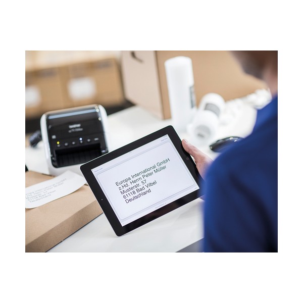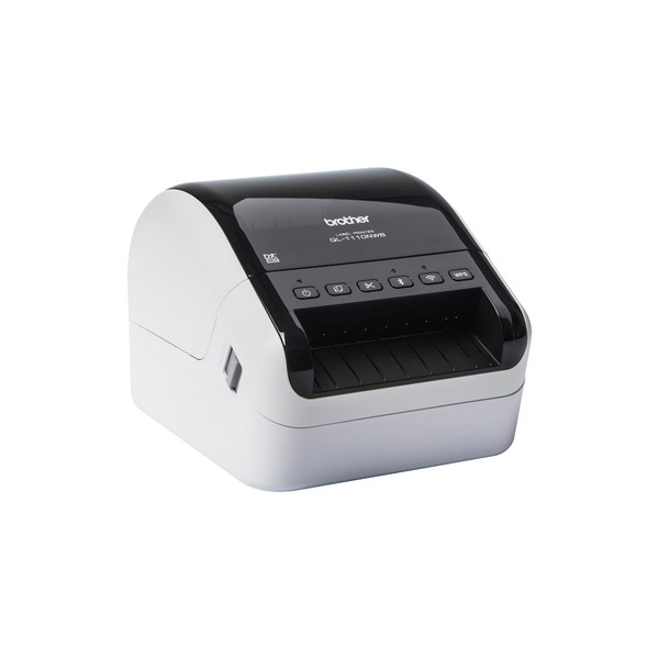Brother QL-1110NWB. Tecnologia di stampa: Termica diretta, Risoluzione massima: 300 x 300 DPI, Velocità di stampa: 110 mm/s. Tecnologia di connessione: Con cavo e senza cavo, Versione Bluetooth: 2.1+EDR, Profili Bluetooth: BIP,HCRP,OPP,SPP. Memoria etichetta: 99 etichetta(e), Memoria flash: 7,8 MB. Massima ampiezza etichetta: 10,4 cm, Massima lunghezza etichetta: 3 m. Tipo nastro: DK, Codici a barre incorporati: AZTECCODE,CODABAR (NW-7),Code 39,Code-128 Codabar Library,Data..., Sistema operativo mobile supportato: Android, iOS