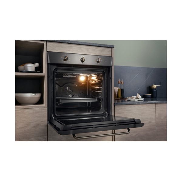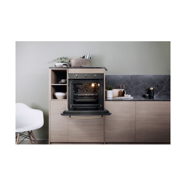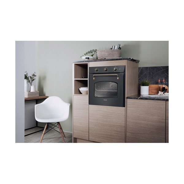 Caratteristiche di questo forno da incasso Hotpoint: tecnologia elettrica avanzata per cucinare risparmiando energia. Lampada alogena consente prestazioni a basso consumo energetico.