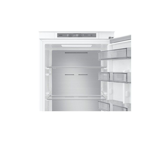 Preserva la freschezza dei cibi anche se la porta viene aperta di frequente. Il pannello Metal Cooling posizionato nella parete di fondo permette di mantenere una temperatura interna ottimale. Trattiene il freddo e impedisce la dispersione di aria fredda quando si apre la porta, compensando rapidamente ogni perdita di calore quando la si richiude.