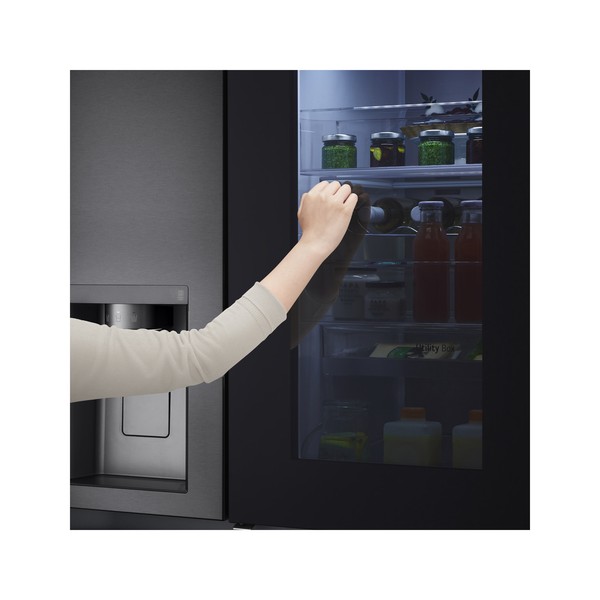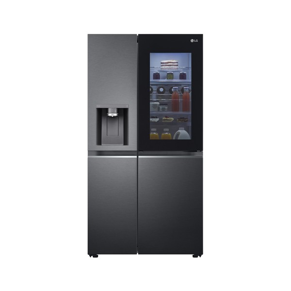 LG GSXV91MCAE Side by Side Instaview Door in DoorTM 635lt Classe energetica E. Posizionamento dell'apparecchio: Libera installazione, Colore del prodotto: Nero, Design del prodotto: Porta americana. Capacità netta totale: 635 L, Classe climatica: T, Classe emissione rumore: C. Capacità netta frigorifero: 416 L. Capacità netta congelatore: 219 L, Posizione del congelatore: Posizionato lateralmente, Capacità di congelamento: 12 kg/24h. Classe efficienza energetica: E, Consumo energetico annuo: 348 kWh, Scala di efficienza energetica: Da A a G