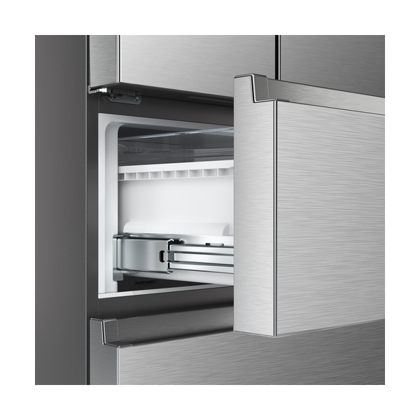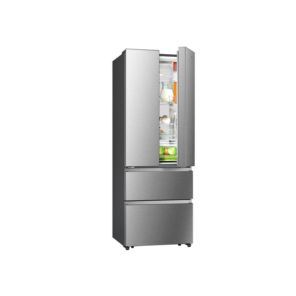 Hisense RF632N4BCE. Posizionamento dell'apparecchio: Libera installazione, Design del prodotto: Porta francese, Colore del prodotto: Stainless steel. Capacità netta totale: 485 L, Classe climatica: N-T, Classe emissione rumore: C. Capacità netta frigorifero: 336 L. Capacità netta congelatore: 149 L, Posizione del congelatore: Posto in basso, Capacità di congelamento: 11 kg/24h. Lunghezza cavo: 2 m