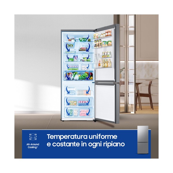 Assicurati che tutti gli alimenti siano adeguatamente refrigerati. Il sistema All-around Cooling garantisce un freddo uniforme in ogni zona del frigorifero. Controlla costantemente la temperatura e fa circolare laria fredda attraverso bocchette collocate in posizioni strategiche. In questo modo ogni prodotto viene conservato alla temperatura ideale e rimane fresco più a lungo.