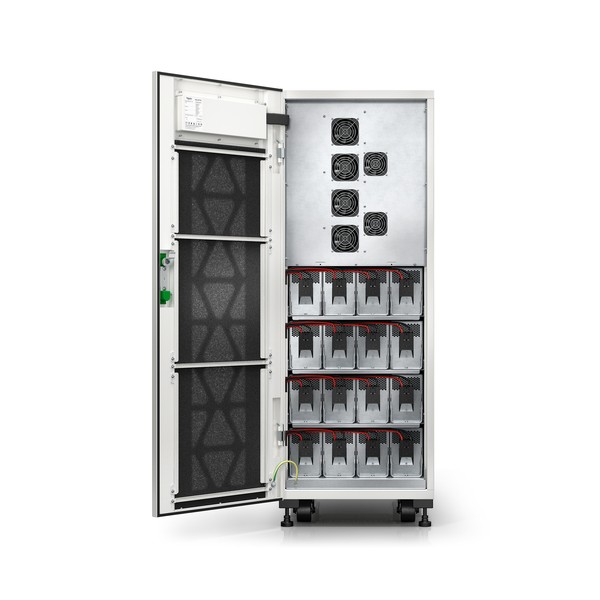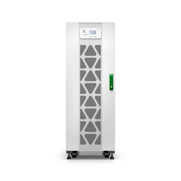 APC Easy 3S. Topologia UPS: Doppia conversione (online), Potenza in uscita: 30 kVA, Potenza in uscita: 30000 W. Tecnologia batteria: Acido piombo (VRLA), Voltaggio della batteria: 240 V, Tempo di salvataggio minimo a pieno carico: 25 min. Fattore di forma: Tower, Colore del prodotto: Bianco, Tipo di display: LED. Larghezza: 500 mm, Profondità: 969 mm, Peso: 584 kg. Voltaggio di uscita: 400 V