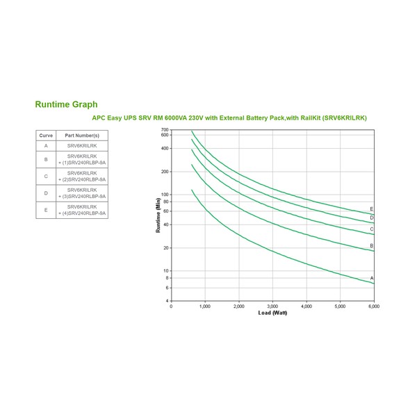 APC Easy UPS SRV RM 6000VA 230V with External Battery Pack,with RailKit. Topologia UPS: Doppia conversione (online), Potenza in uscita: 6 kVA, Potenza in uscita: 6000 W. Fattore di forma: Montaggio a rack, Colore del prodotto: Nero, Capacità di rack: 5U
