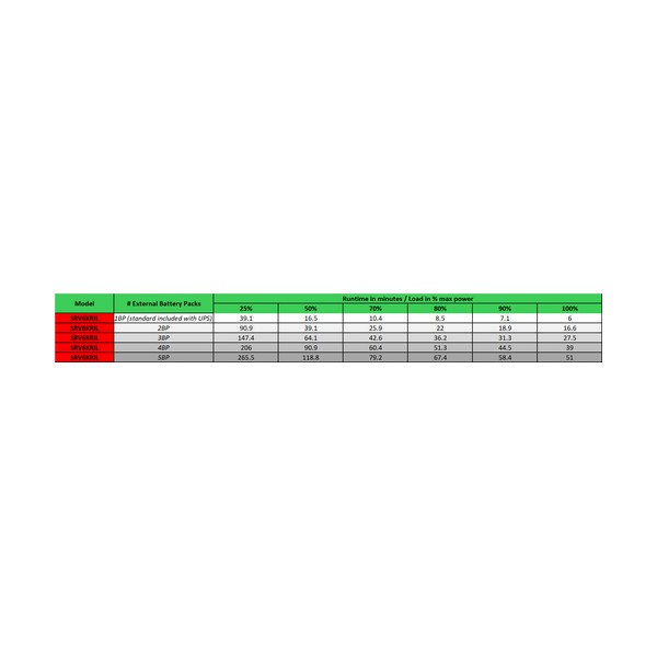 APC SRV6KRIL. Topologia UPS: Doppia conversione (online), Potenza in uscita: 6 kVA, Potenza in uscita: 6000 W. Tecnologia batteria: Acido piombo (VRLA), Tempo di ricarica: 3 h. Fattore di forma: Montaggio a rack, Colore del prodotto: Nero, Tipo di display: LCD. Larghezza: 438 mm, Profondità: 710 mm, Altezza: 173 mm. Cavi inclusi: Cavo USB