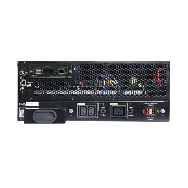 APC SRTG6KXLI. Topologia UPS: Doppia conversione (online), Potenza in uscita: 6 kVA, Potenza in uscita: 6000 W. Tipo di uscita AC: Accoppiatore C13, Accoppiatore C19, Quantità prese AC: 3 presa(e) AC. Tecnologia batteria: Acido piombo (VRLA), Voltaggio della batteria: 96 V, Durata della batteria (max): 5 anno/i. Fattore di forma: Compatta, Colore del prodotto: Nero, Tipo di display: LCD. Larghezza: 440 mm, Profondità: 620 mm, Altezza: 178 mm