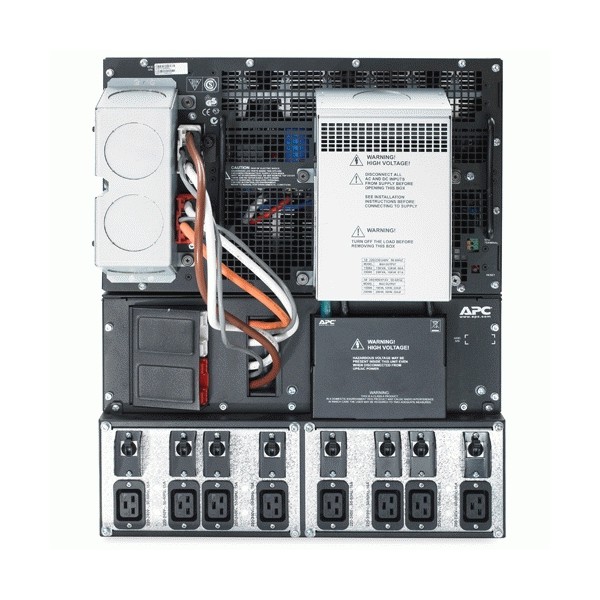 APC Smart-UPS On-Line. Topologia UPS: Doppia conversione (online), Potenza in uscita: 15000 VA, Potenza in uscita: 12000 W. Tipo di uscita AC: Accoppiatore C19, Presa di corrente: Terminale, Quantità prese AC: 8 presa(e) AC. Tecnologia batteria: Acido piombo (VRLA), Capacità della batteria: 3840 VAh, Tempo di salvataggio minimo a pieno carico: 8,3 min. Fattore di forma: Rackmount/Tower, Colore del prodotto: Nero, Capacità di rack: 12U. Larghezza: 432 mm, Profondità: 773 mm, Altezza: 533 mm