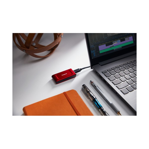 L'SSD esterno XS1000 di Kingston è una soluzione di backup dei file incredibilmente conveniente. La sua forma elegante e compatta è stata progettata per adattarsi perfettamente al vostro stile di vita, consentendovi di portarlo ovunque con facilità. Non lasciatevi fuorviare dalle dimensioni: questo piccolo concentrato di potenza è in grado di raggiungere velocità fino a 1.050 MB/s* con capacità che arrivano fino a 2 TB**, garantendo così tutta la velocità e lo spazio di cui possono necessitare i vostri preziosi dati. Compatibile con i dispositivi USB sia Type-C®***** che Type-A grazie al cavo e all'adattatore forniti in dotazione****** così da offrire un'ineguagliabile comodità e un'eccezionale capacità di archiviazione, il drive XS1000 è il vostro assistente di fiducia che realizza backup dei file semplici e veloci, in grado di garantire un accesso immediato ai vostri documenti importanti, ai ricordi più cari e ai file multimediali. Dimenticatevi dei dispositivi ingombranti e date il benvenuto ad uno storage efficiente ed organizzato come il drive SSD esterno XS1000. Disponibile in colore nero o rosso.