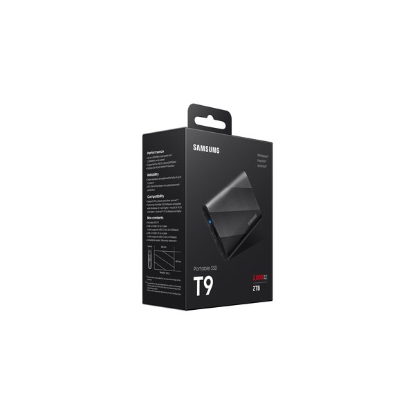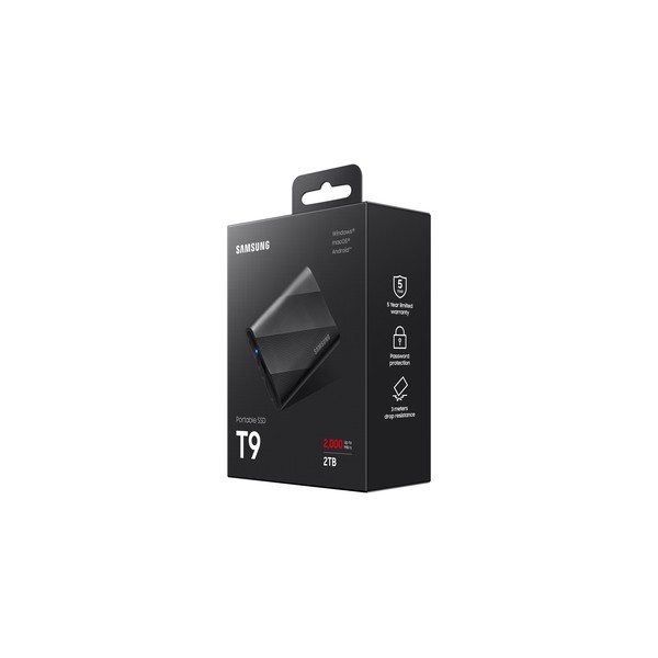 Trasferimento dati super veloce Migliora l’efficienza del tuo flusso di lavoro con il Portable SSD T9, che consente velocità di lettura/scrittura sequenziali fino a 2.000 Mb/s grazie all’interfaccia USB 3.2 Gen 2x2 di ultima generazione.