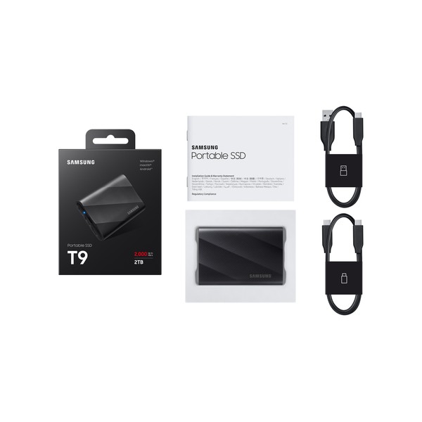 Adatto per i tuoi dispositivi T9 è compatibile con tutti i tuoi dispositivi: dagli smartphone e tablet Windows®, macOS® e Android™, alle console per gaming fino alle fotocamere 12K, e molto altro ancora. Nella confezione sono inclusi i cavi USB-C® a C e USB-C® ad A per una maggiore connettività.
