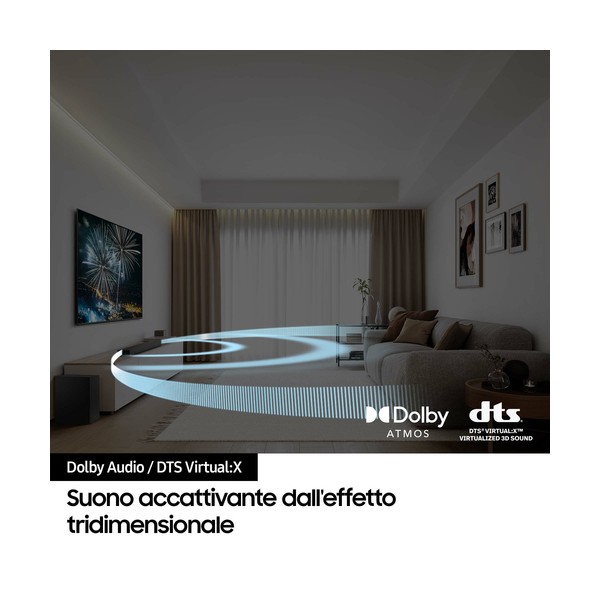 La tecnologia Dolby Audio e DTS Virtual:X utilizza tecniche di elaborazione audio all'avanguardia per ottenere un audio surround 3D, con una sensazione di profondità.