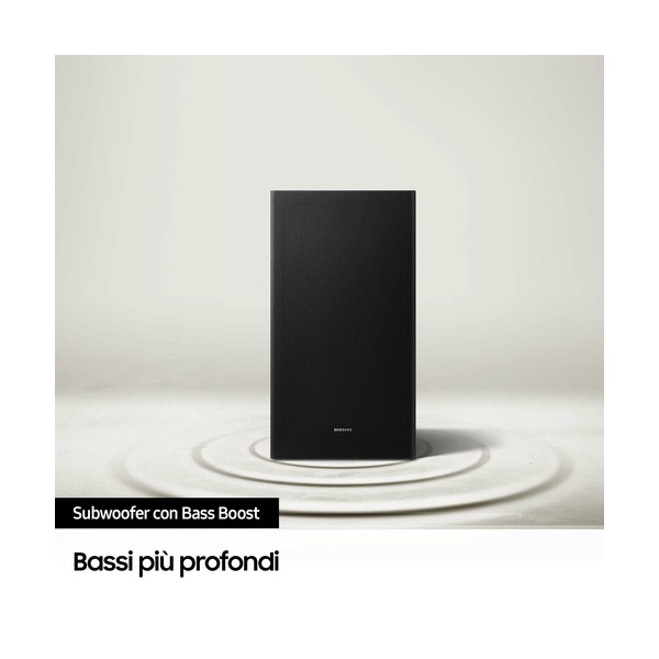 Dona un nuovo livello di profondità a ogni suono con la modalità Bass Boost. Con il subwoofer wireless, i bassi saranno più pieni e intensi e ruberanno davvero la scena.