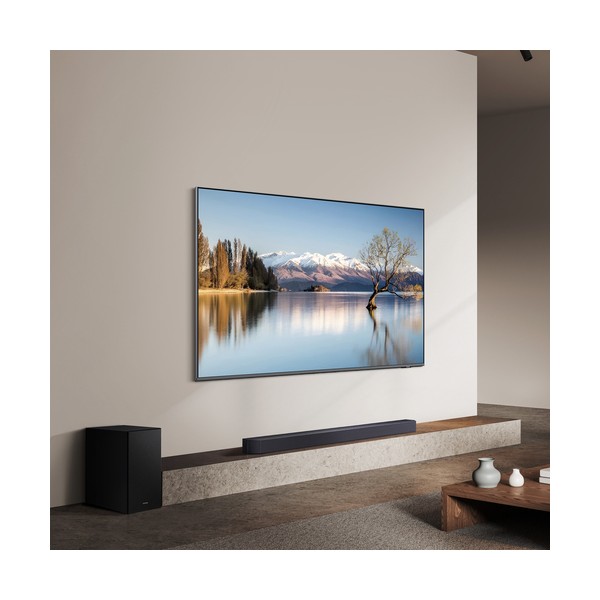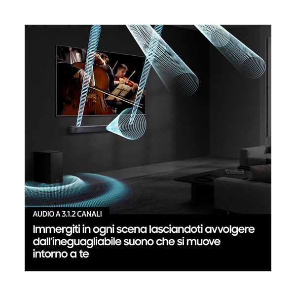 Un suono straordinario in perfetta sintonia con il tuo ambiente. La soundbar analizza lambiente e regola l'audio in base alle sue caratteristiche, ottimizzando anche i bassi, per ottenere un suono nitido e avvolgente.