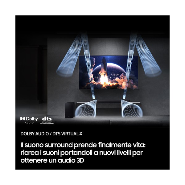 Vivi un'esperienza audio immersiva grazie a formati audio basati su oggetti come Dolby Atmos e DTS Virtual:X.