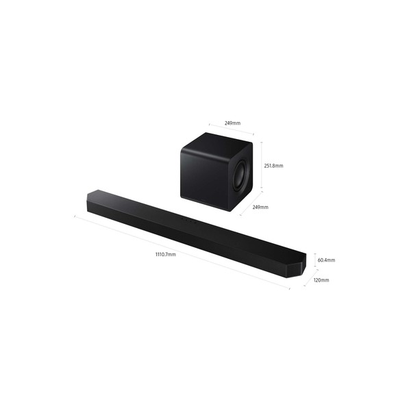 La soundbar è dotata della tecnologia HDMI eARC, che consente di diffondere perfettamente il suono dal televisore e dai dispositivi collegati. Da oggi potrai vivere un'esperienza audio surround 3D con diversi formati come Dolby Atmos in alta qualità.