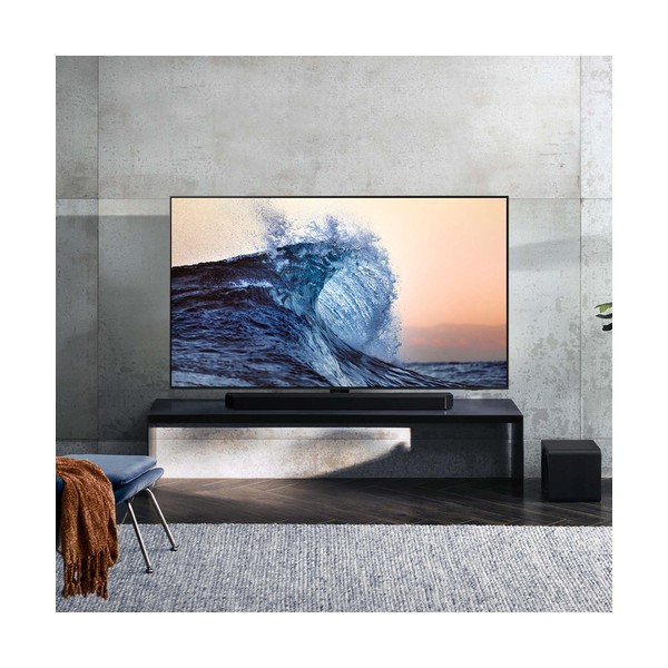 Collega la tua soundbar al TV Samsung con Wi-Fi o Bluetooth in pochi istanti. Audio e video perfettamente sincronizzati, per un'esperienza di visione incredibilmente immersiva.
