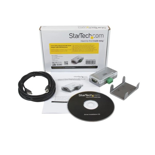 L'adattatore seriale 2 porte da USB a RS-232 RS-422 RS-485 con interfaccia COM ICUSB2324852 consente di connettere qualsiasi dispositivo seriale a un computer USB, per comunicazioni RS-232, RS-422 o RS-485. L'adattatore presenta un connettore maschio a 9 pin (DB9) e un blocco terminale seriale a 5 pin, oltre a controlli dip-switch per una semplice configurazione delle porte con requisiti di software minimi. L'adattatore supporta, inoltre, l'utilizzo contemporaneo di 2 porte, anche con protocolli misti; ad esempio RS-232 sulla porta 1 e RS-485 sulla porta 2 o altre combinazioni. Per un'installazione conveniente e ordinata in uffici o ambienti industriali, l'adattatore USB RS-232/RS-422/RS-485 può essere montato a parete ed è completamente alimentato tramite il collegamento USB host, che alimenta il dispositivo seriale collegato senza che sia necessario un adattatore di alimentazione esterno. Con garanzia StarTech.com di 2 anni e supporto tecnico a vita gratuito.