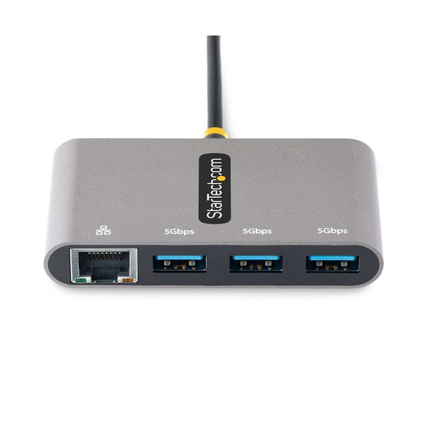 Ethernet 10/100/1000 | USB Type-C a 3x USB Type-A | USB 3.2 Gen 1 (5Gbps) | Cavo host integrato da 30 cmQuesto hub USB-C con Ethernet Gigabit consente di aggiungere tre porte USB-A 3.2 Gen 1 (5Gbps) e una porta Lan Gigabit a un notebook con porta USB-Type C. L'hub USB alimentato via bus si collega a una porta USB Tipo-C di un computer portatile, utilizzando il cavo host integrato da 30 cm. Le dimensioni compatte di questo hub USB ne facilitano la portabilità in viaggio.Ethernet GigabitL'hub USB è dotato di un adattatore Ethernet GbE. Il controller Ethernet è compatibile con gli standard IEEE 802.3u/ab e supporta Wake-on-LAN (WoL), Jumbo Frames e V-LAN Tagging. L'adattatore di rete USB-C Lan aumenta l'affidabilità; la sicurezza e le prestazioni della rete del computer portatile, utilizzando la connessione Ethernet 10/100/1000Mbps cablata.Collega fino a Tre Dispositivi USB-AL'hub a 3 porte USB 3.2 Gen 1 (5Gbps) consente di aggiungere tre porte USB-A utilizzando una singola porta USB-C. L'hub USB è retrocompatibile con i dispositivi USB 2.0 (480Mbps), garantendo il supporto di un'ampia gamma di periferiche USB moderne e tradizionali (ad esempio, dispositivi di archiviazione esterni, chiavette USB, HDD/SSD, videocamere HD, mouse, tastiere, webcam e cuffie audio).L'hub USB è alimentato dal bus. Assorbe fino a 15W di potenza dal computer host USB-C. Ogni porta USB-A a valle è in grado di fornire fino a 4,5W (5V/0,9A) di alimentazione alle periferiche collegate. Per una maggiore protezione dei dispositivi collegati, le porte USB sono dotate di protezione da sovracorrente (OCP). L'OCP impedisce alle periferiche USB di assorbire una quantità di energia superiore a quella riservata alla porta.Plug and PlayQuesto dispositivo è compatibile con tutti i principali sistemi operativi, compresi Windows, macOS, ChromeOS, iPadOS e Android. L'Hub viene rilevato e configurato automaticamente appena collegato al computer host. Ciò garantisce l'installazione automatica e la configurazione delle impostazioni con qualsiasi computer portatile USB-C, compresi i notebook Thunderbolt 3, Thunderbolt 4 e USB4 come Apple MacBook (Intel/M1/M2), Lenovo X1 Carbon e Dell XPS. Il cavo host USB-C extra lungo da 30 cm integrato garantisce una facile configurazione e riduce la tensione dei connettori su dispositivi 2-in-1 come Surface Pro 7, iPad Pro, HP Elite X2 e laptop su supporti rialzati.Migliora la produttività e la gestione dei dispositivi con l'applicazione StarTech.com Connectivity ToolsSviluppata per migliorare le prestazioni e la sicurezza, StarTech.com Connectivity Tools è l'unica suite software sul mercato compatibile con un'ampia gamma di accessori di connettività IT. La suite software comprende:-MAC Address Pass-Through Utility: Per aumentare la sicurezza della rete.-USB Event Monitoring Utility: Per tracciare e registrare i dispositivi USB collegati.-Wi-Fi Auto Switch Utility: Consente di accedere rapidamente a velocità di rete più elevate tramite la LAN cablata.Per ulteriori informazioni e per scaricare l'applicazione StarTech.com Connectivity Tools, visitare il sito: www.StarTech.com/connectivity-toolsQuesto prodotto è supportato per 2 anni, compresa l'assistenza tecnica gratuita a vita 24/5 multilingue.The StarTech.com Advantage
