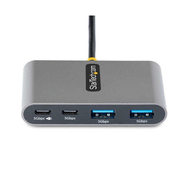 Da USB Tipo-C a 2x USB Tipo-A e 2x USB Tipo-C | USB 3.2 Gen 1 (5Gbps) | 100W USB Power Delivery Pass-ThroughQuesto hub USB-C con 100W USB Power Delivery pass-through aggiunge quattro porte USB 3.2 Gen 1 5Gbps (2x USB-A, 2x USB-C) a un computer abilitato per USB-C. Collegate l'hub USB a una porta USB C di un laptop, utilizzando il cavo host USB-C integrato da 30 cm. Ricarica un computer portatile host collegando l'alimentatore USB-C del computer portatile host alla porta USB Power Delivery (PD) 3.0. La retrocompatibilità con i dispositivi USB 2.0 (480 Mbps) garantisce il supporto di un'ampia gamma di periferiche USB moderne e tradizionali (ad esempio, dispositivi di archiviazione esterni, chiavette USB, HDD/SSD, videocamere HD, mouse, tastiere, webcam e cuffie audio). L'hub USB supporta il Wake on USB ed è di dimensioni compatte, per facilitare la portabilità in viaggio.USB Power Delivery Pass-ThroughQuesto hub USB è dotato di USB Power Delivery 3.0 pass-through (fino a 100W). Questa funzione consente all'hub USB Type-C di collegare una fonte di alimentazione USB-C (fino a 100W) per alimentare e ricaricare un laptop tramite una delle porte USB tipo-C a valle. PD 3.0 è dotato di Fast Role Swap (FRS) per evitare la perdita di dati USB quando si passa da una fonte di alimentazione all'altra (adattatore di alimentazione USB-C o alimentazione tramite bus).L'hub USB può funzionare con un adattatore di alimentazione USB-C collegato o con la sola alimentazione da bus. Assorbe fino a 15 W di potenza dal computer host USB-C che viene condivisa dinamicamente tra le porte a valle. Per una maggiore protezione dell'hub USB e del dispositivo host collegato, l'hub USB è dotato di Protezione da Sovracorrente (OCP). L'OCP impedisce alle periferiche USB difettose di assorbire più energia di quella assegnata in modo sicuro.Plug & PlayQuesto dispositivo è compatibile con tutti i principali sistemi operativi compresi Windows, macOS, ChromeOS, iPadOS e Android. L'Hub viene rilevato, configurato e installato automaticamente al momento della connessione a un computer host. Ciò garantisce l'installazione automatica e la configurazione delle impostazioni con qualsiasi computer portatile USB-C compresi i computer Thunderbolt 3, Thunderbolt 4 e USB4 come Apple MacBook (Intel/M1/M2), Lenovo X1 Carbon e Dell XPS. Il cavo USB-C integrato lungo 30 cm garantisce una facile configurazione e riduce la tensione del connettore su dispositivi 2-in-1 come Surface Pro 7, iPad Pro, HP Elite X2 e laptop su supporti rialzati.Migliorare la Produttività e la Gestione dei Dispositivi con l'Applicazione StarTech.com Connectivity ToolsSviluppata per migliorare le prestazioni e la sicurezza, StarTech.com Connectivity Tools è l'unica suite software sul mercato compatibile con un'ampia gamma di accessori di connettività IT. Il software applicabile a questo prodotto è USB Event Monitoring. Utilizzare questa utility per monitorare e registrare tutti i dispositivi USB collegati.Per ulteriori informazioni e per scaricare l'applicazione StarTech.com Connectivity Tools, visitare il sito web: www.StarTech.com/connectivity-toolsQuesto prodotto è supportato per 2 anni, compresa l'assistenza tecnica gratuita a vita 24/5 multilingue.The StarTech.com Advantage