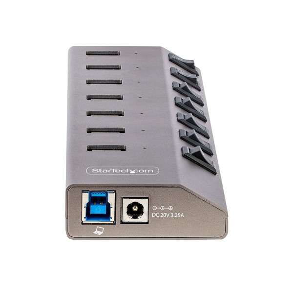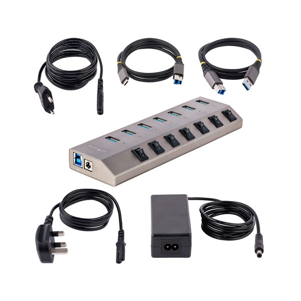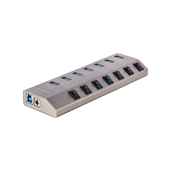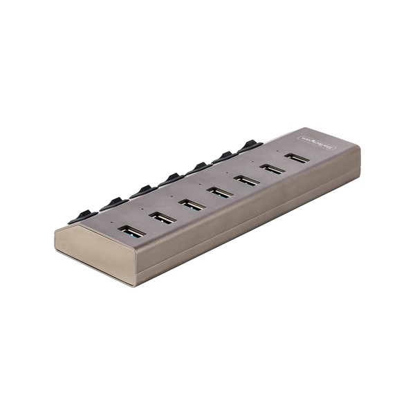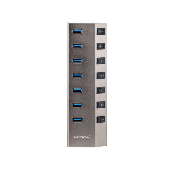 Hub USB 7 Porte| Porte con Interruttori On/Off Individuali | USB 3.2 Gen 1 (5Gbps) | Cavo da 1m USB-C e USB-A InclusoQuesto hub USB 3.2 Gen 1 (5Gbps) a 7 porte aggiunge sette porte USB Type-A a un computer, con il vantaggio che ogni porta dispone di un interruttore individuale on/off. L'hub USB è autoalimentato grazie all'alimentatore incluso. Si può collegare ad una porta USB-A o USB-C di un computer portatile o desktop.Sette Interruttori di Accensione/SpegnimentoLe sette porte di questa multipresa USB sono dotate di un interruttore per disattivare la connessione dati/alimentazione del dispositivo collegato quando non viene utilizzato. Ciò significa che è possibile spegnere le singole porte USB per ridurre il consumo energetico, senza dover scollegare fisicamente il dispositivo o il cavo. Inoltre, questa funzione può garantire la privacy spegnendo le fotocamere o i dispositivi di archiviazione dati esterni che contengono dati sensibili quando non sono in uso.Alimentazione e Ricarica dei Dispositivi USBQuesta ciabatta USB è autoalimentata grazie all'alimentatore da 65 W incluso. Ciò consente a tutte e sette le porte di questo hub USB di supportare la tecnologia BC 1.2, fornendo 1,5A (7,5W) di potenza simultaneamente (52,5W in totale), rendendolo ideale per ricaricare dispositivi USB alimentati a batteria come smartphone e tablet, assicurando anche la connessione dati. L'hub USB è in grado di fornire alimentazione con o senza un computer host collegato, con supporto per applicazioni CDP (Charging Downstream Port) e DCP (Dedicated Charging Port).Sette Porte USB Aggiuntive per Collegare Dispositivi USBQuesto hub USB 3.2 Gen 1 (5Gbps) a 7 porte espande la connettività USB del computer, aggiungendo sette porte USB-A tramite una singola porta USB-A o USB-C. L'hub USB è retrocompatibile con i vecchi dispositivi USB 2.0 (480 Mbps), garantendo il supporto per una vasta gamma di dispositivi USB moderni e legacy come dispositivi di archiviazione esterni (chiavette USB, HDD/SSD), fotocamere HD, mouse, tastiere, webcam e cuffie USB.USB 3.2 Gen 1 (5Gbps) è anche conosciuto come USB 3.2 Gen 1 (5Gbps) e USB 3.0 (5Gbps).Installazione Plug-and-Play Senza ProblemiQuesta presa multipla USB a 7 porte è indipendente dal sistema operativo ed è compatibile con tutti i sistemi operativi inclusi Windows, macOS, Chrome OS, iPad OS e Android e si installa automaticamente quando è collegato a un computer. Per garantire la massima compatibilità con i dispositivi host USB, sono inclusi singoli cavi USB-A e USB-C da 1 m.Questo prodotto è supportato per 2 anni, inclusa l'assistenza tecnica multilingue gratuita a vita 24/5.The StarTech.com Advantage