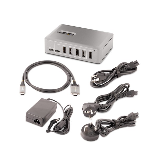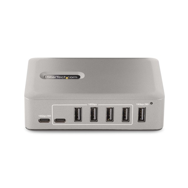 Consente di aggiungere 8 porte USB-A e 2 porte USB-C a un desktop/notebook tramite una porta USB-CQuesto hub USB-C a 10 porte consente di aggiungere dieci porte USB 3.2 Gen 2 (10Gbps) (8x USB-A, 2x USB-C) a un computer occupando una sola porta USB-C. La multipresa USB autoalimentata con un adattatore di alimentazione incluso, è dotato di protezione da sovracorrente OCP, che impedisce alle periferiche di assorbire troppa energia, evitando la disconnessione dei dispositivi USB e lo spegnimento imprevisto dei computer. Il supporto per Wake On USB consente le comunicazioni USB, provenienti dai dispositivi collegati all'hub; di far uscire il computer dalla modalità di standby o da altre modalità di risparmio energetico/sleep.Hub USB 3.2 Gen 2 (10Gbps) ad Alte PrestazioniL'hub USB condivide 10Gbps di larghezza di banda dal dispositivo host USB, consentendo trasferimenti di dati ad alta velocità per applicazioni ad alte prestazioni. L'hub USB è compatibile con le versioni USB precedenti, tra cui USB 3.2 Gen 1 (5Gpbs), USB 2.0 (480Mbps) e USB 1.1 (12Mbps). Dispone di otto porte USB-A e due porte USB-C. Questa combinazione di porte consente di supportare un'ampia gamma di dispositivi USB moderni e tradizionali, come dispositivi di archiviazione esterni (ad esempio chiavette USB, HDD/SSD), videocamere HD (ad esempio webcam), mouse, tastiere e cuffie USB.Alimentare e caricare i dispositivi USBLa ciabatta USB è autoalimentata, con un alimentatore da 65W è dotata di due porte USB BC 1.2 (1x USB-A, 1x USB-C), ognuna delle quali fornisce 2,4A (12W) di potenza simultaneamente, il che la rende ideale per caricare dispositivi USB alimentati a batteria come smartphone e tablet, fornendo al contempo una connessione dati. Queste porte forniscono energia con o senza un computer host collegato, con supporto per applicazioni CDP (Charging Downstream Port) e DCP (Dedicated Charging Port). L'hub dispone di sette porte USB-A e una porta USB-C che forniscono ciascuna una potenza di 0,9 A (4,5 W) secondo lo standard USB 3.2. L'adattatore di alimentazione incluso garantisce che tutte le porte siano in grado di fornire energia indicata, indipendentemente dal numero di dispositivi collegati.Cavo Host Certificato USB-IFÈ incluso un cavo host USB-C certificato USB-IF di alta qualità. Il cavo è dotato di un connettore con chiusura a vite per garantire una connessione sicura e affidabile all'hub USB. Il rivestimento del cavo in elastomero termoplastico (TPE) è più morbido e flessibile rispetto ai cavi rivestiti in PVC.Installazione Plug-and-PlayQuesta multipresa USB a 10 porte è indipendente dal sistema operativo e supporta tutti i sistemi operativi, compresi Windows, macOS, ChromeOS, iPadOS e Android. L'installazione è automatica al momento della connessione a un computer host.Questo hub USB può essere installato su una parete, una scrivania o un supporto VESA, utilizzando i supporti per hub StarTech.com: SSPMSUDWM.Aumento della produttività e della gestione dei dispositivi con l'applicazione StarTech.com Connectivity ToolsSviluppata per migliorare le prestazioni e la sicurezza, StarTech.com Connectivity Tools è l'unica suite software sul mercato compatibile con un'ampia gamma di accessori di connettività IT. Il software applicabile a questo prodotto è l'Utilità di monitoraggio eventi USB. Questa utility consente di monitorare e registrare qualsiasi dispositivo USB collegato.Per ulteriori informazioni e per scaricare l'applicazione StarTech.com Connectivity Tools, visitare il sito: www.StarTech.com/connectivity-toolsQuesto prodotto è supportato per 2 anni compresa l'assistenza tecnica gratuita a vita 24/5 multilingue.The StarTech.com Advantage