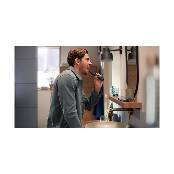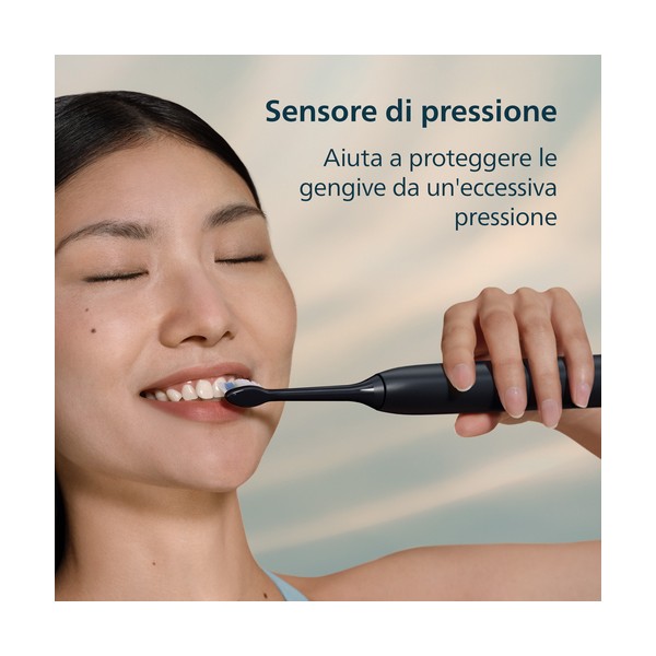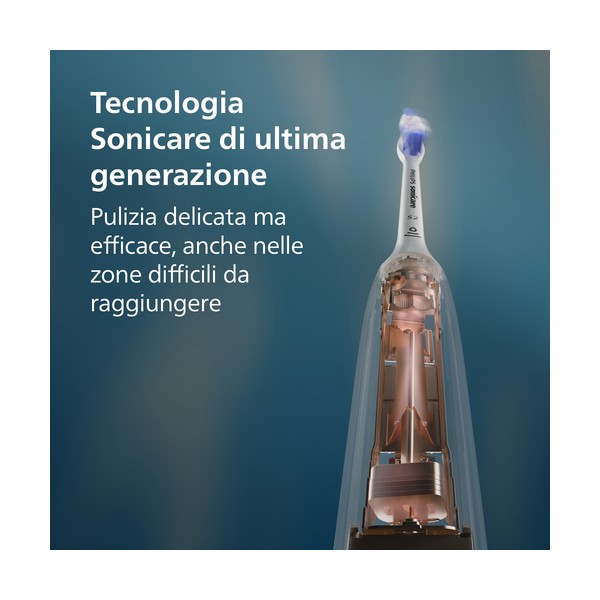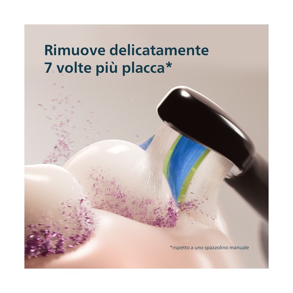 Goditi una piacevole esperienza di pulizia e un nuovo livello di igiene orale con la tecnologia Sonicare di nuova generazione. Durante la pulizia dei denti, l'innovativo sistema magnetico dello spazzolino regola la potenza di pulizia in ogni sessione di utilizzo, offrendo prestazioni ottimali con 62.000 movimenti di setole al minuto, anche nelle zone difficili da raggiungere. Nel frattempo, l'azione fluida e dinamica favorisce le prestazioni delle setole durante la rimozione della placca, per una pulizia completa a ogni utilizzo.