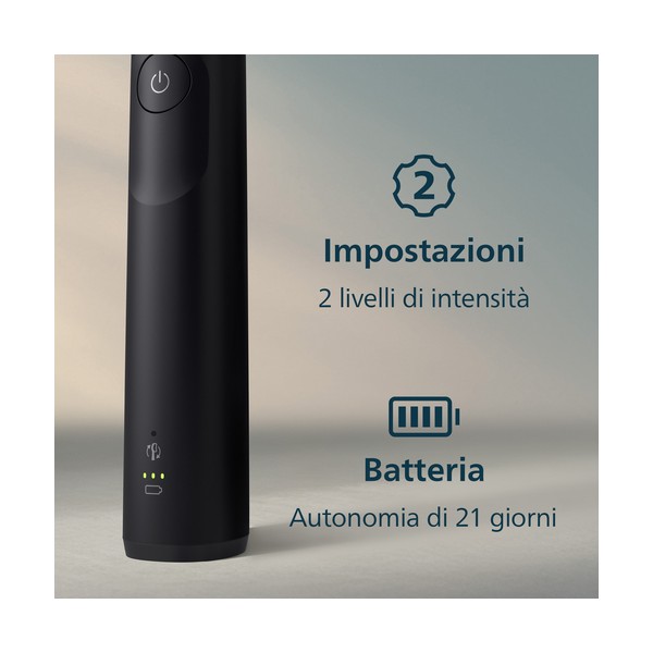 Per una cura ottimale di denti e gengive, Philips Sonicare 5300 offre una scelta di 2 livelli di intensità. Sia che tu preferisca una maggiore potenza di pulizia con l'impostazione alta o una pulizia delicata ma accurata con l'impostazione bassa, questo spazzolino fa al caso tuo.