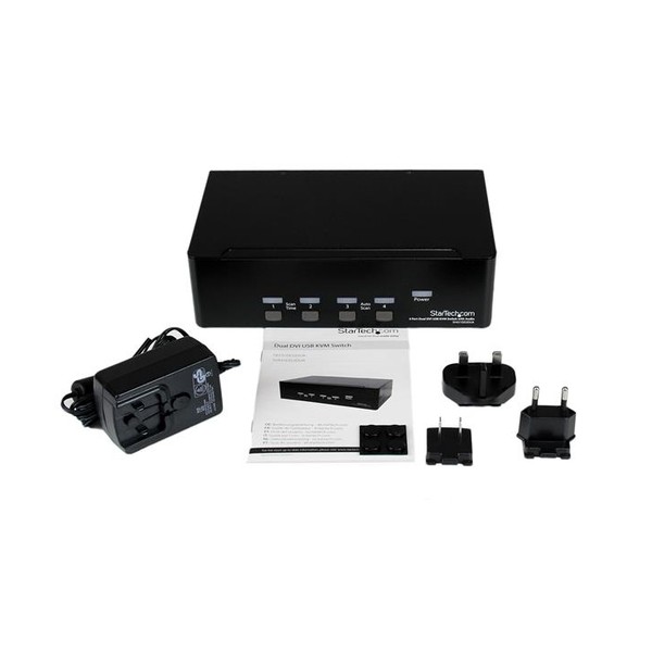 Lo switch KVM Dual DVI USB a 4 porte SV431DD2DUA consente fino a quattro PC dotati ognuno di porte Dual DVI di condividere due monitor, un microfono e altoparlanti, una tastiera e un mouse nonché altre due periferiche USB. Soluzione ideale per designer grafici, disegnatori CAD/CAM o istituti scolastici e finanziari, lo switch KVM doppio monitor consente di commutare immediatamente tra PC con doppio display DVI con un semplice tasto mantenendo livelli di qualità video professionali su entrambe i monitor. Lo switch Dual DVI è dotato di una porta hub USB integrata che consente di collegare periferiche USB 2.0 quali unità thumb, dischi rigidi esterni o webcam condividendole tra sistemi collegati ed eliminare la necessità di dover acquistare periferiche doppie. Nota: benché la postazione KVM supporti sia i segnali DVI-I (modalità analogica) e DVI-D (solamente digitale), entrambe i PC sorgenti devono supportare lo stesso tipo di segnale per effettuare la commutazione. Si raccomanda laddove possibile di utilizzare cavi DVI-D per tutte le connessioni PC a KVM e KVM a postazione. Contattare il servizio di assistenza tecnica, per richiedere supporto nell'individuare il tipo di sorgente. Con garanzia StarTech.com di 3 anni e supporto tecnico a vita gratuito. Consente di montare uno switch KVM in un rack Per montare questo switch KVM in un server rack, StarTech.com offre una staffa 1U per montaggio in rack (venduta separatamente). Il vantaggio StarTech.com - L'hub USB 2.0 integrato e le porte Mic/Audio permettono all'utente di gestire i dispositivi multimediali di due computer e condividere le periferiche USB eliminando la spesa per dispositivi doppi - Per sfruttare al meglio i vantaggi offerti dalle schede video Dual Head mediante la commutazione fino a quattro macchine tra due monitor DVI ad alta risoluzione - Nessun driver o software richiesto, per una soluzione KVM completamente indipendente dal sistema operativo