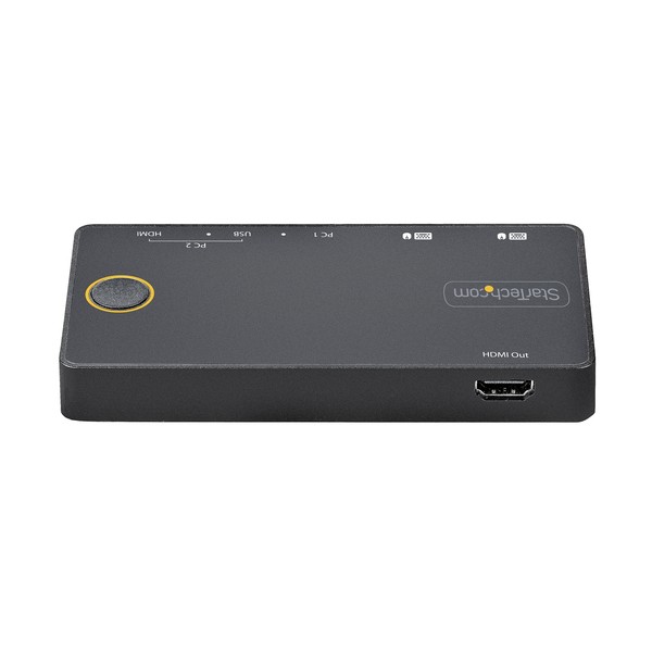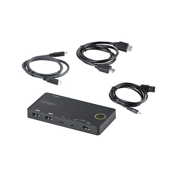 Switch KVM USB-C e USB-A/HDMI | 2 porte | HDMI 2.0 4K 60HzQuesto dispositivo KVM USB-C™ /USB-A a 2 porte consente di passare facilmente da un computer desktop/laptop USB Type-C o Thunderbolt™ 3 a un computer desktop/laptop USB-A e HDMI e viceversa utilizzando una singola tastiera, un mouse e un monitor HDMI®.Facile da configurare e utilizzareGrazie all'uso delle tecnologie USB-C con DP Alt Mode e USB-A e HDMI, questo switch KVM compatto richiede il collegamento di un solo cavo a ciascun computer, garantendo un ingombro ridotto e un numero di cavi limitato. Sono inclusi tutti i cavi necessari per collegare i computer a garanzia di una configurazione immediata e senza problemi.PC 1PC 21 porta HDMI 2.0+1 porta Micro USB-B1 porta USB-C Type-C(Video + dati)Il dispositivo KVM è dotato di un singolo pulsante che consente di passare facilmente tra i computer collegati.Supporta risoluzioni 4K a 60 HzLo switch KVM USB-C è compatibile con risoluzioni UHD fino a 4K (3840 x 2160) a 60 Hz e supporta un display HDMI 2.0 di grandi dimensioni, garantendo il massimo spazio di visualizzazione.Compatto e portatileOltre al design USB-C che garantisce requisiti di cablaggio minimi, il dispositivo KVM è alimentato tramite bus, il che riduce ulteriormente l'ingombro grazie all'assenza dell'adattatore di alimentazione. Il fattore di forma ridotto e leggero rende questo mini switch KVM facile da implementare ed è ideale per la forza lavoro mobile/in hot desking.Compatibilità garantitaIl dispositivo KVM è indipendente dal sistema operativo e supporta tutti i sistemi operativi, tra cui Windows, Linux, macOS, iOS (Apple iPad Pro) e Android. StarTech.com ha rigorosamente testato questo prodotto per garantirne la compatibilità con tutti i marchi di dispositivi più diffusi, tra cui Dell, HP, Apple e Lenovo.Il prodotto SV221HUC4K è coperto da una garanzia StarTech.com di 2 anni e dal supporto tecnico gratuito a vita.The StarTech.com Advantage