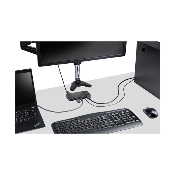 SPECIFICHE: PC 1: 1 porta USB-C - PC 2: 1 porta HDMI + 1 porta USB-A - UHD 4K a 60 Hz - 3840x2160 - Uscita video HDMI 2.0 - Commutazione tramite pulsante - Alimentazione tramite bus - Indipendente dal sistema operativo - Compatibile con Thunderbolt 3