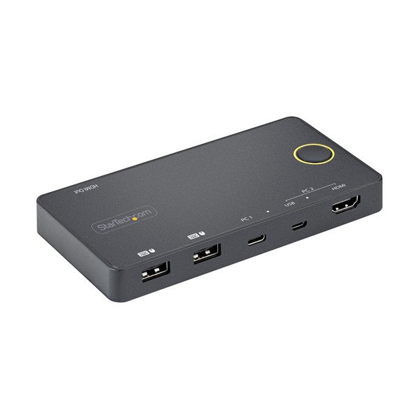StarTech.com Switch KVM ibrido USB-A + HDMI e USB-C a 2 porte - Monitor singolo HDMI 2.0 4K 60Hz - Switch KVM compatto per deskt