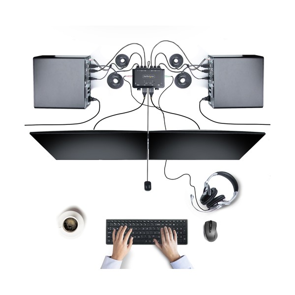 StarTech.com C2-DH46-UA2-CBL-KVM. Tipo di porte tastiera: USB, Tipo porta mouse: USB, Tipo porta video: HDMI. Tipologia HD: 4K Ultra HD, Risoluzione massima: 4096 x 2160 Pixel, Larghezza di banda video: 60 Hz. Colore del prodotto: Nero, Materiale della scocca: Acrilonitrile butadiene stirene (ABS), Lunghezza cavo: 1,5 m. Alimentazione: USB. Sistema operativo Windows supportato: Windows 10, Windows 10 Education, Windows 10 Education x64, Windows 10 Enterprise, Windows 10..., Compatibilità sistema operativo Mac: Mac OS X 10.12 Sierra, Mac OS X 10.13 High Sierra, Mac OS X 10.14 Mojave, Mac OS X 10.15 Catalina,..., Altri sistemi operativi supportati: ChromeOS