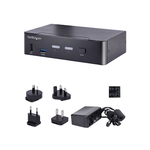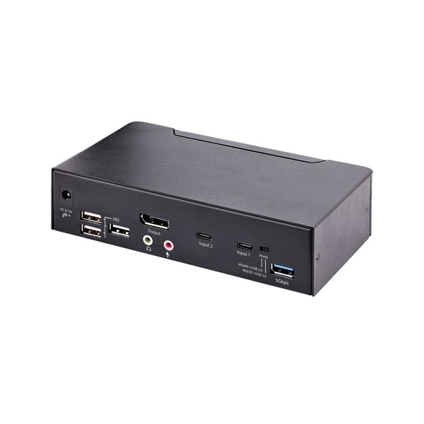 KVM DisplayPort 1.2 | Hub USB-A a 6 porte | Audio digitale e analogico | Conformità TAAQuesto switch KVM a 2 porte combina capacità digitali 4K 60Hz con il controllo di due computer USB-C DP Alt-mode, Thunderbolt 3 o Thunderbolt 4.Risoluzione 4K 60HzQuesto KVM USB C a 2 porte commuta tra due computer con interfaccia USB-C su un singolo monitor DisplayPort. Supporta una risoluzione fino a 4K 60Hz (4:4:4) con hub a 6 porte USB-A 480 Mbps . Questo KVM è ottimo per applicazioni come il CAD/CAM, l'editing video e la creazione di contenuti dove potrebbe essere necessario privilegiare la qualità dell'immagine o la velocità di trasferimento dei file. Il supporto per l'High Dynamic Range (HDR) offre maggiore contrasto, luminosità, colori e maggiore luminosità.Audio Analogico e DigitaleQuesto switch KVM USB-C DisplayPort supporta l'uscita audio analogica e digitale a 2 canali, così come l'ingresso del microfono, attraverso le porte 3.5mm o USB. Ciò fornisce all'utente un controllo audio centralizzato attraverso lo switch KVM. I profili audio sono selezionabili con i comandi dei tasti di scelta rapida.Controllo IntuitivoIl pulsante sul pannello frontale e le funzioni dei tasti di scelta rapida rendono facile passare da un computer all'altro. L'installazione di computer host è facile e veloce, utilizzando un unico cavo USB-C per il collegamento al KVM. Le porte USB HID e USB Hub sulla parte anteriore e posteriore assicurano una comoda configurazione di setup e l'accesso alle periferiche USB. L'alloggiamento in metallo dello switch KVM è adatto a molti ambienti di installazione.Questo prodotto è supportato per 2 anni, compresa l'assistenza tecnica multilingue gratuita a vita 24/5.The StarTech.com Advantage