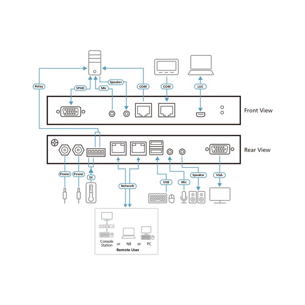 Lo switch KVM over IP VGA CN9000 consente l'accesso remoto e il controllo di video, audio e media virtuali di un PC o workstation, dispone di risoluzioni video elevate VGA fino a 1920 x 1200 a 60 Hz sia per le console locali che remote. Dotato di supporto USB e PS/2 (tastiera e mouse), il CN9000 è compatibile non solo con le workstation moderne, ma anche con sistemi legacy e server della generazione precedente. 1x switch KVM over IP VGA CN9000 1x cavo KVM (VGA, PS/2, USB) 1x cavo USB (da USB Tipo-A a Mini-B) 1x adattatore di alimentazione 1x morsettiera di controllo 1x kit di montaggio 1x set di piedini 1x istruzioni per l'utente