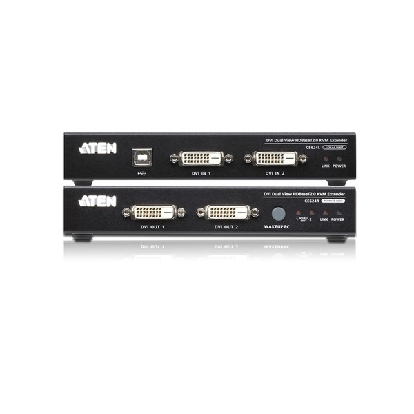 L'extender KVM USB DVI Dual View HDBaseT™ 2.0 CE624 di ATEN integra le tecnologie HDBaseT™ 2.0 più recenti per offrire una trasmissione altamente affidabile dei segnali video, audio, USB e RS-232 disponibile sul mercato. CE624 offre segnali video DVI Dual View di qualità elevata, audio digitale a 2 canali PCM, USB 2.0 e RS-232 fino a 100 metri dal computer sorgente utilizzando un singolo cavo Cat6/6a. Con la semplice installazione di un cavo in grado di supportare vari segnali, CE624 è ideale per applicazioni dove è necessario un accesso remoto comodo, in luoghi come centri di controllo dei trasporti, strutture mediche, stabilimenti industriali e stazioni lavoro estese. 1x CE624L Extender KVM USB DVI Dual View HDBaseT 2.0 (Unità locale) 1x CE624R Extender KVM USB DVI Dual View HDBaseT 2.0 (Unità remota) 2x LIN5-26W1-W11G cavi DVI-D (1,8 m) 1x LIN5-0205-21DG set di cavi jack audio rosa (1,8 m) 1x LIN5-0205-21CG set di cavi jack audio verde (1,8 m) 1x LIN6-04U1-V1BG cavo USB (1,8 m) 2x 0AD6-8005-40MG adattatori di alimentazione 2x LIN2-418K-E12G cavo di alimentazione 8x cuscinetti 2x kit di montaggio 1x istruzioni per l'utente