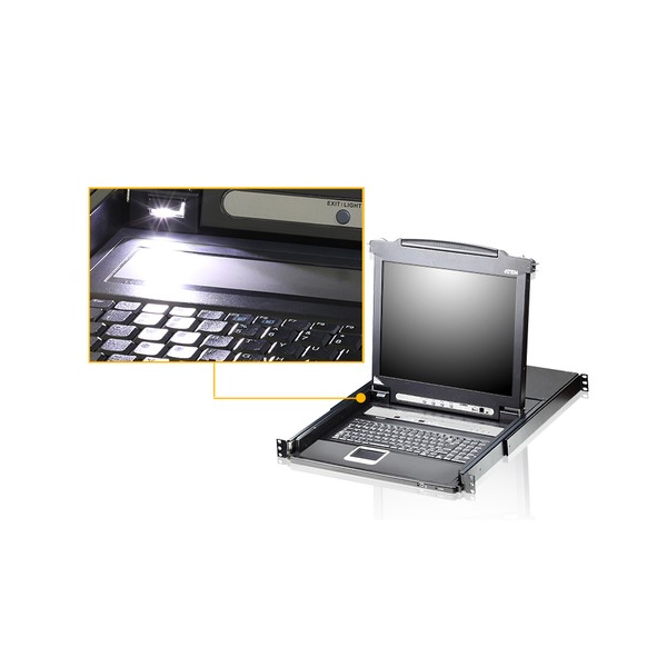 • Luce di illuminazione LED esclusiva studiata da ATEN per illuminare la tastiera e il touchpad e consente una migliore visibilità in caso di scarsa illuminazione