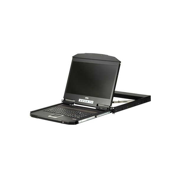 Console KVM integrata con binario singolo a profondità ridotta e monitor LCD da 18,5” LED retroilluminato per lavorare in spazi ridotti