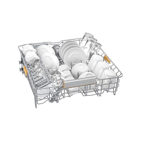 Carica piatti, bicchieri e tazze di diverse forme e dimensioni senza pensieri: il cestello centrale è regolabile in 3 diverse configurazioni grazie a una leva, ed è anche dotato di portabicchieri. Provvisto di denti ripiegabili, il cestello inferiore è perfetto per riporre piatti e ciotole in tutta sicurezza, mentre le stoviglie più grandi possono trovare posto sul fondo.