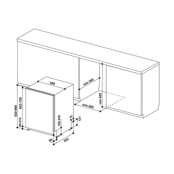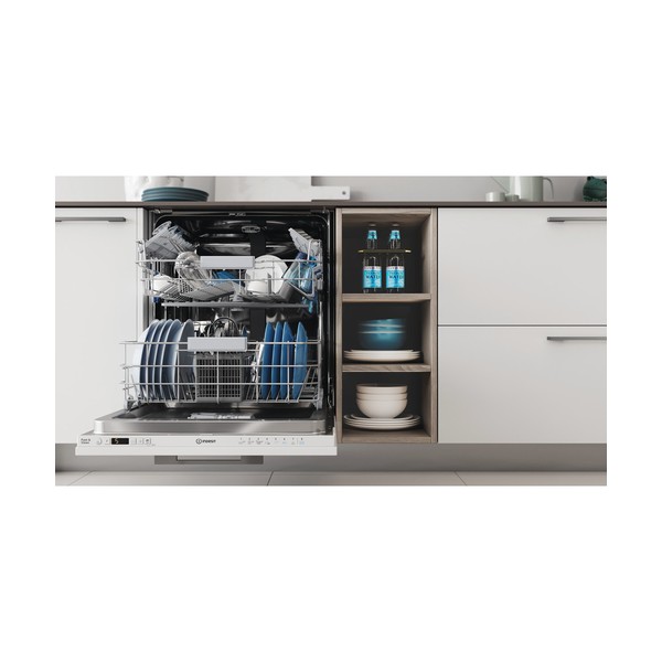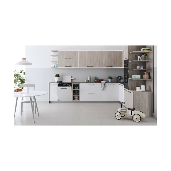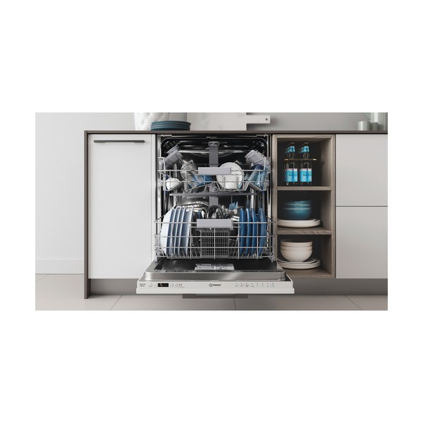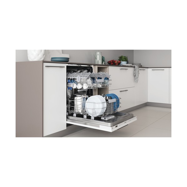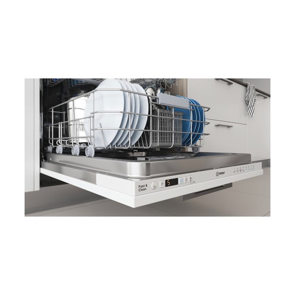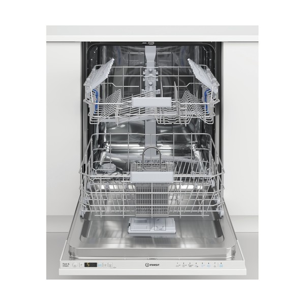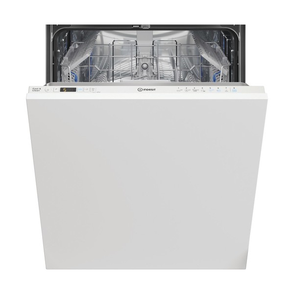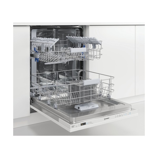 Indesit DIC3C24A. Posizionamento dell'apparecchio: A scomparsa totale, Dimensione: Dimensione massima (60 cm), Colore pannello di controllo: Bianco. Numero di coperti: 14 coperti, Classe emissione rumore: B, Emissione acustica: 44 dB. Classe efficienza energetica: E, Consumo di acqua per ciclo: 9,5 L, Consumo energetico per 100 cicli: 95 kWh. Larghezza: 598 mm, Profondità: 555 mm, Altezza: 820 mm