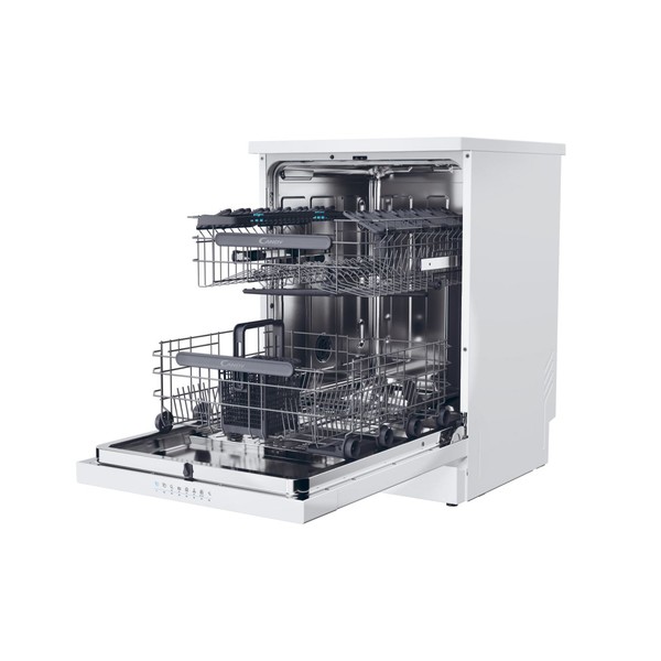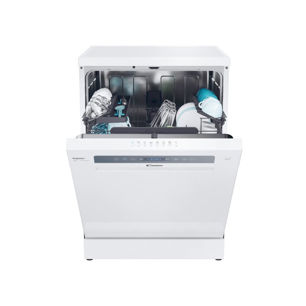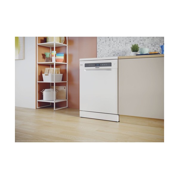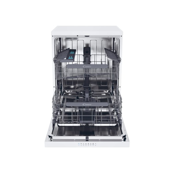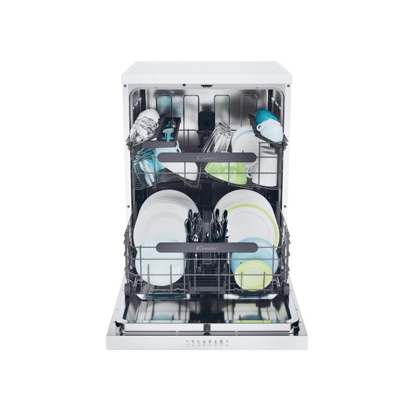 Candy CF 4C6F0W. Posizionamento dell'apparecchio: Superficie piana, Dimensione: Dimensione massima (60 cm), Colore della porta: Bianco. Numero di coperti: 14 coperti, Classe emissione rumore: C, Emissione acustica: 46 dB. Applicazioni per il controllo supportate: hOn. Classe efficienza energetica: C, Consumo di acqua per ciclo: 10,9 L, Consumo energetico per 100 cicli: 74 kWh. Larghezza: 597 mm, Profondità: 598 mm, Altezza: 850 mm